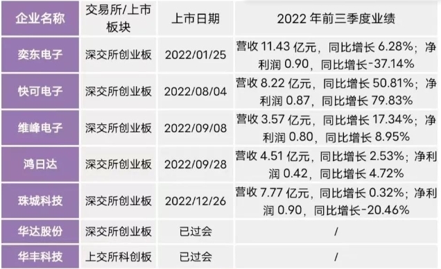 回顧2022全年,在連接器行業中,先后有5家連接器企業順利上市,分別是奕東電子、快可電子、維峰電子、鴻日達、珠城科技。此外,華達股份、華豐科技也分別在深交所創業板、上交所科創板成功過會。